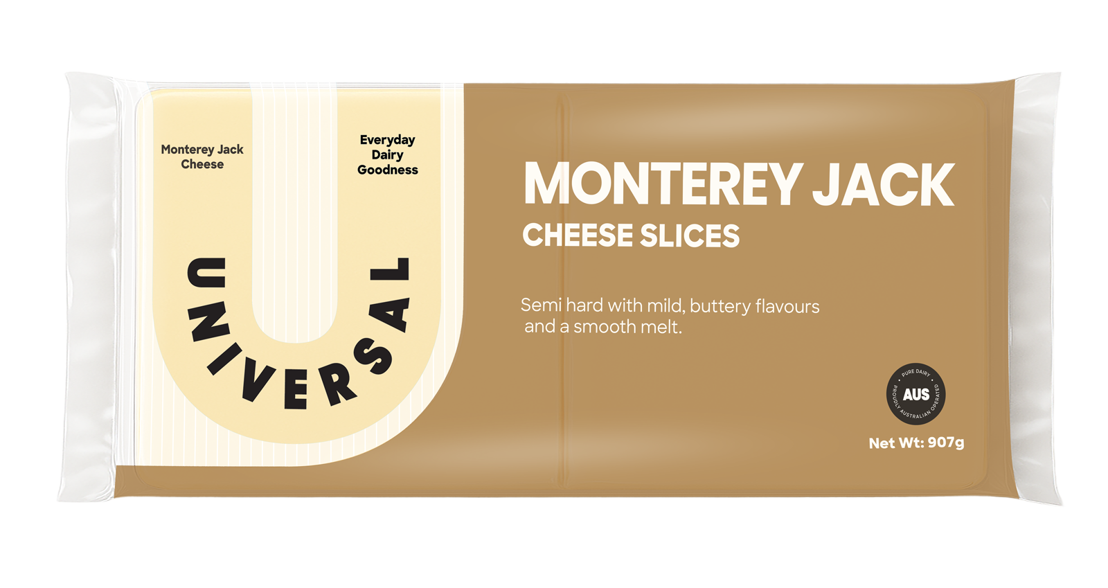 Universal knows that the secret to a delicious creation lies in simple, natural ingredients. That’s why our Monterey Jack slices are made from real cheese, not processed, offering a gentle flavour and consistent melt — perfect for adding a touch of creamy indulgence to every bite.