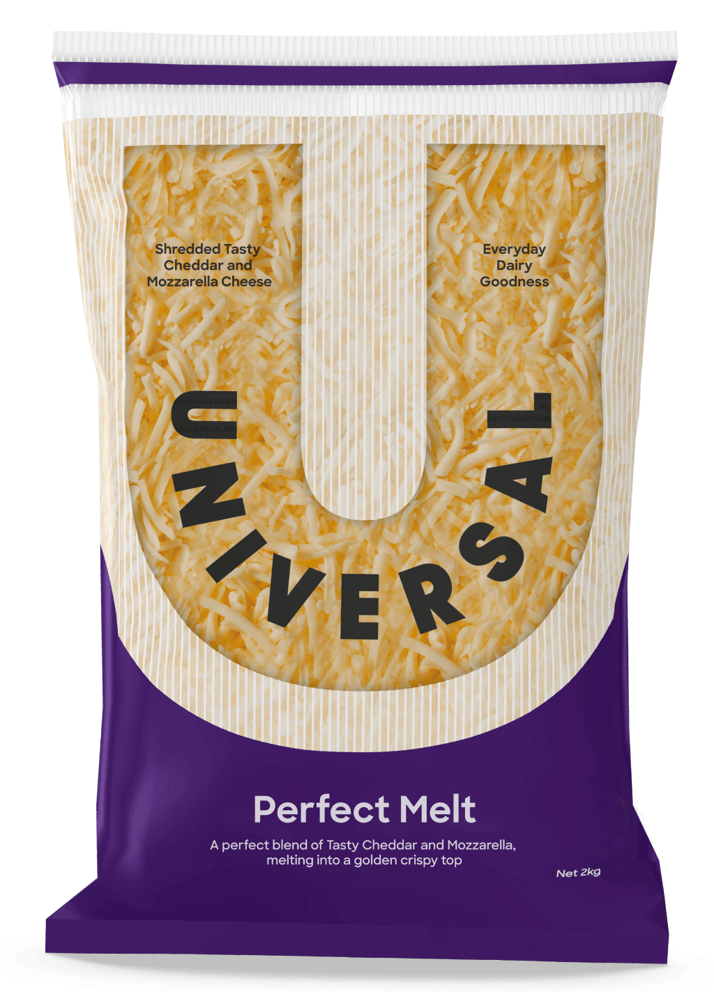Universal Perfect Melt is a premium shredded cheese blend combining Cheddar and Mozzarella for the ultimate melt, stretch, and flavour.