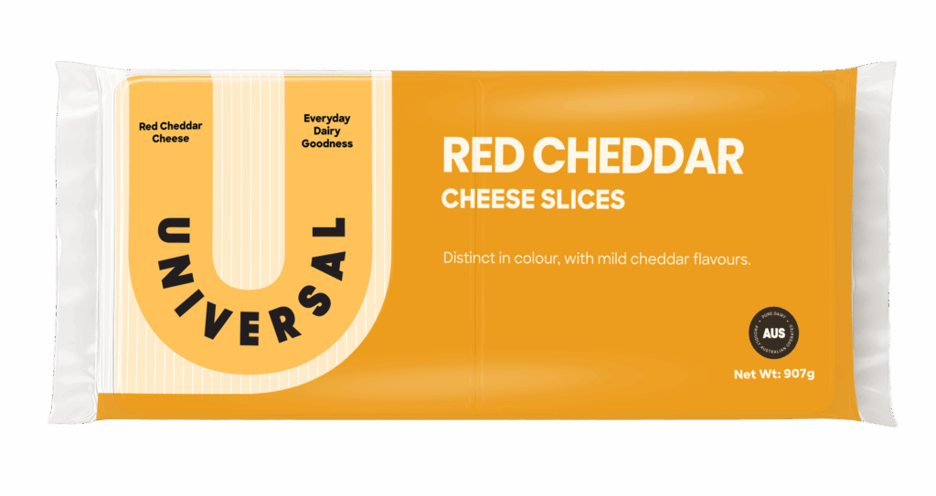 Universal Tasty Cheddar Slice captures the distinctively delicious flavours of authentic block cheddar cheese in slice form.