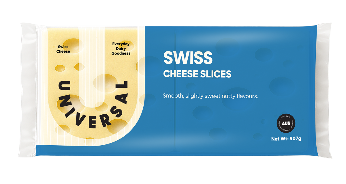 Universal Swiss Cheese Slice delivers the smooth, nutty flavour and signature mild aroma of authentic Swiss cheese in a perfectly balanced slice form. Universal believes that every great sandwich, baguette or burger begins with natural, quality ingredients. That’s why our Swiss cheese slices are crafted from real cheese, not processed, offering a gentle sweetness and a creamy texture that melts beautifully — ideal for creating gourmet-style meals with a touch of sophistication.